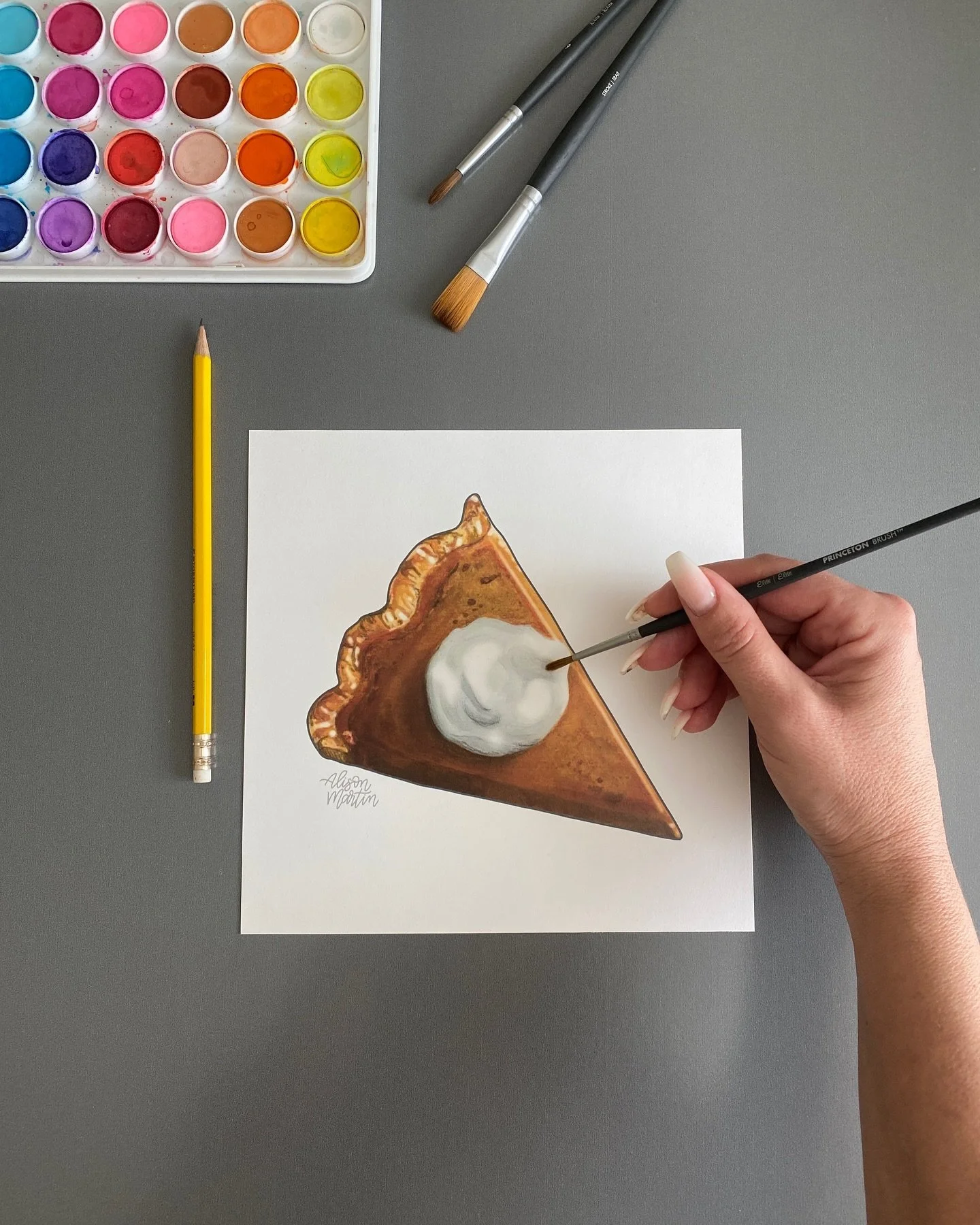I make watercolour art and hand lettered works that I use to create cards, prints, stationery items and home accessories for foodies. Funny thing, I don’t love the term ‘foodie’… I prefer ‘food enthusiast’ or ‘gourmand’ (aka those who are excessively fond of eating and drinking). I hope that my creations find a place with home cooks, chefs, nutritionists, mixologists, oneophiles, gastronomes or anyone else whose way to their heart is through their stomach!